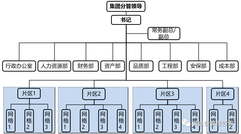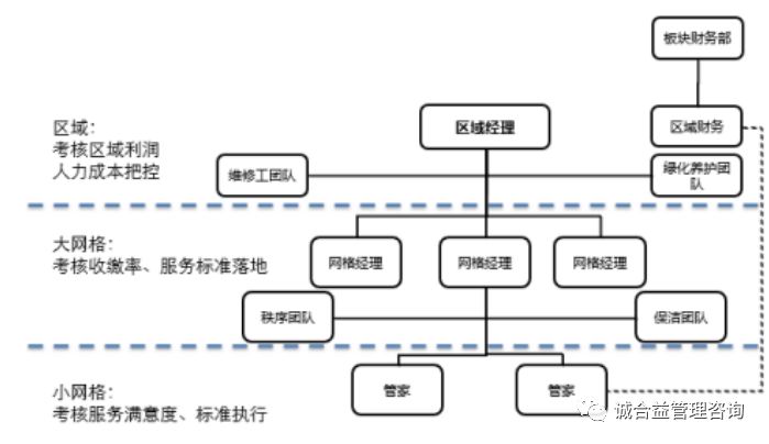 因爲物(wù)業(yè)管理(lǐ)具備同質性,因此在在整合初期,通過對21個(gè)管理(lǐ)處的(de)距離(lí)、規模等進行(xíng)了盤整,把規模較小(xiǎo)、距離(lí)相(xiàng)近且小(xiǎo)區年代相(xiàng)似的(de)管理(lǐ)處進行(xíng)合并,從原本的(de)21個(gè)管理(lǐ)處調整爲13個(gè)網格。整合後的(de)網格管理(lǐ)規模差距适當縮小(xiǎo),管理(lǐ)難度也(yě)相(xiàng)對接近。 方案設計(jì)要點二:設置區域,搭建資源共享平台。 進行(xíng)架構優化時,搭建物(wù)業(yè)公司三層管理(lǐ)架構:物(wù)業(yè)總部——區域——網格,将各類資源合理(lǐ)分(fēn)配至三層架構中,合理(lǐ)實現資源共享。 1️⃣ 物(wù)業(yè)總部: 設置物(wù)業(yè)公司常規職能(néng)部門和(hé)業(yè)務部門,服務于下屬各網格,包括行(xíng)政部、人(rén)資部等職能(néng)部門和(hé)品質部、工(gōng)程部等業(yè)務部門; 2️⃣ 區域: 區域是總部和(hé)下設網格(原管理(lǐ)處層級)之間架設的(de)一層組織架構,将13個(gè)網格劃分(fēn)爲四大(dà)區域,将原歸屬于網格層級的(de)維修工(gōng)和(hé)綠(lǜ)化養護團隊統一彙總到(dào)區域調配,由區域按對轄區内的(de)網格進行(xíng)統一的(de)報修響應服務和(hé)綠(lǜ)化計(jì)劃性維護。實現資源共享,解決網格人(rén)員配置緊張和(hé)冗餘的(de)問題。 3️⃣ 網格: 類似于原小(xiǎo)區管理(lǐ)處,配備秩序安保團隊、保潔團隊和(hé)客服團隊(管家)。 方案設計(jì)要點三:按品質要求劃分(fēn)區域,合理(lǐ)設置管理(lǐ)标準。 在搭建中間管理(lǐ)層級“區域”後,除實現資源共享外,還根據區域的(de)劃分(fēn),設置不同的(de)品質管理(lǐ)要求。如(rú)A集團的(de)區域一均爲新建小(xiǎo)區,軟硬件(jiàn)設施設備配置均較好,物(wù)業(yè)費标準也(yě)達到(dào)1元以上(shàng),而區域二爲典型的(de)老舊保障房小(xiǎo)區,物(wù)業(yè)費标準僅爲幾毛。物(wù)業(yè)費标準不同,物(wù)業(yè)服務品質自然差異較大(dà)。通過區域架構的(de)搭建,将品質管理(lǐ)要求不同的(de)小(xiǎo)區進行(xíng)了區分(fēn),針對區域一設置較高(gāo)的(de)品質服務标準,從而對接不同的(de)管理(lǐ)要求和(hé)績效考核标準。 新架構中,21個(gè)管理(lǐ)處通過整合變爲了13個(gè)網格,相(xiàng)應的(de)網格管理(lǐ)人(rén)員人(rén)數大(dà)幅減少(shǎo),同時在新架構、新品質要求下的(de)網格經理(lǐ),不管是專業(yè)能(néng)力還是管理(lǐ)能(néng)力,均與原管理(lǐ)處要求差異較大(dà)。因此對A集團原有(yǒu)31名管理(lǐ)處主任、副主任組織開(kāi)展人(rén)才盤點工(gōng)作,重新競聘上(shàng)崗。 項目組對管理(lǐ)處各主任、副主任進行(xíng)盤點時,主要從基本情況、素質能(néng)力兩方面開(kāi)展。 原單個(gè)管理(lǐ)處會(huì)配置1-3名正副主任,雖然人(rén)員較多,但(dàn)是較多管理(lǐ)處主任是從一線崗位晉升上(shàng)來,如(rú)保安、維修工(gōng)崗位,而且整體年齡偏大(dà)。在新架構要求下,不管是管理(lǐ)能(néng)力還是專業(yè)能(néng)力,均存在一定差距,因此項目組首先從硬性履曆上(shàng)面進行(xíng)了解,适當的(de)篩選出年齡偏大(dà)和(hé)以往從業(yè)履曆單薄的(de)管理(lǐ)人(rén)員。 項目組通過一對一訪談的(de)方式,從四個(gè)方面8個(gè)維度評估現有(yǒu)管理(lǐ)處主任、副主任是否匹配網格經理(lǐ)素質要求,并将評估後的(de)結果與所有(yǒu)人(rén)員的(de)平均分(fēn)進行(xíng)對比,從而形成每人(rén)的(de)素質能(néng)力雷達圖,爲後續人(rén)員競聘上(shàng)崗提供數據支撐。