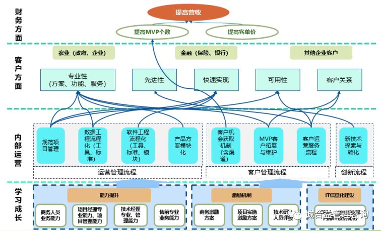 2.明(míng)确客戶定位:我們的(de)客戶是誰?我們滿足客戶哪方面的(de)價值訴求? 戰略的(de)本質就是差異化,有(yǒu)所爲有(yǒu)所不爲,是基于客戶定位的(de)差異化。比如(rú),健身軟件(jiàn)Keep,他(tā)的(de)客戶定位就是年輕、小(xiǎo)白的(de)普通健身用(yòng)戶,這群客戶的(de)普遍痛點就是對身材和(hé)健康有(yǒu)追求,但(dàn)隻能(néng)碎片化時間健身、不懂健身專業(yè)知識、不想花太多錢在專業(yè)健身房、難以堅持等,因此,Keep軟件(jiàn)重點滿足這部分(fēn)客戶三個(gè)方面的(de)價值訴求:簡單易學、系統專業(yè)、刺激堅持。 3.探索業(yè)績增長策略:如(rú)何實現收入增長? 經營要出奇,但(dàn)不是靠靈感式的(de)創新,任何低成本有(yǒu)效創新的(de)背後都(dōu)是有(yǒu)邏輯的(de)思考。企業(yè)如(rú)何實現業(yè)績增長同樣可(kě)以有(yǒu)系統邏輯幫助中高(gāo)層思考,這個(gè)邏輯分(fēn)爲三個(gè)步驟: 比如(rú),某連鎖服裝企業(yè)的(de)收入增長公式=店(diàn)鋪數*客流量*進店(diàn)率*體驗率*成交率*連單率*回頭率,假設公司目前在“成交率”這一增長公式環節存在較大(dà)提升空間,那進一步研討(tǎo)尋找影響“成交率”的(de)驅動因素,可(kě)能(néng)發現“銷售人(rén)員的(de)銷售技巧普遍不足”,那對應的(de)增長策略和(hé)舉措就自然而然出來了。 4.繪制(zhì)戰略地(dì)圖:清晰呈現公司戰略實現路(lù)徑 經過客戶定位和(hé)業(yè)績增長的(de)發散性討(tǎo)論和(hé)碰撞,我們需要一個(gè)工(gōng)具對明(míng)年的(de)戰略實施路(lù)徑進行(xíng)收斂和(hé)呈現,這就是戰略地(dì)圖所能(néng)發揮的(de)作用(yòng)。戰略地(dì)圖描繪了一個(gè)公司從财務、客戶、内部運營和(hé)學習(xí)成長四個(gè)層面的(de)邏輯關系,能(néng)夠很好地(dì)引導企業(yè)既關注短期,又(yòu)關注長期關鍵事項,既考慮滞後結果指标,又(yòu)考慮過程驅動指标,因此我們認爲是企業(yè)可(kě)持續性發展及戰略溝通最有(yǒu)效的(de)工(gōng)具。 5.績效指标的(de)提煉分(fēn)解:針對所有(yǒu)戰略舉措設定衡量标準并有(yǒu)效分(fēn)解 針對戰略地(dì)圖中的(de)每個(gè)核心主題和(hé)舉措,中高(gāo)層分(fēn)組交叉討(tǎo)論具體的(de)衡量指标及指标責任部門。 認目标:如(rú)何促成有(yǒu)效的(de)碰撞與共識 在目标設定環節,很多企業(yè)還會(huì)面臨員工(gōng)不認同目标的(de)情況,不認同就不會(huì)發自内心的(de)執行(xíng),最後的(de)執行(xíng)效果可(kě)想而知也(yě)不會(huì)太理(lǐ)想。 在企業(yè)咨詢輔導中,我們發現團隊共創和(hé)共識非常關鍵。因此,戰略地(dì)圖和(hé)年度目标的(de)設定環節,通常都(dōu)是組織中高(gāo)層團隊一起參與,通過1-3輪頭腦(nǎo)風暴研討(tǎo)會(huì)的(de)方式輸出成果,對目标和(hé)指标達成共識。爲了達到(dào)更好地(dì)研討(tǎo)和(hé)共識效果,以下有(yǒu)幾個(gè)實操經驗給大(dà)家分(fēn)享: 頭腦(nǎo)風暴一定要遵循發散、碰撞、收斂三部曲的(de)節奏,先發散性思考和(hé)分(fēn)享、然後引發激烈碰撞、最後收斂取舍。 研討(tǎo)會(huì)最好是換在有(yǒu)新鮮感的(de)外部場(chǎng)地(dì),脫離(lí)日常辦公場(chǎng)所,避免慣性思維。同時,過程中要有(yǒu)熱(rè)場(chǎng)破冰環節,要有(yǒu)分(fēn)組,而且最好是部門和(hé)層級打散之後的(de)分(fēn)組。 研討(tǎo)會(huì)大(dà)部分(fēn)環節盡量用(yòng)大(dà)白紙(zhǐ)呈現討(tǎo)論結果,通過大(dà)白闆收斂成果,大(dà)白紙(zhǐ)可(kě)以張貼在周圍牆上(shàng),所有(yǒu)小(xiǎo)組成員圍著(zhe)大(dà)白紙(zhǐ)展開(kāi)討(tǎo)論,通過這樣可(kě)視化的(de)方式激發思維和(hé)參與度。 選擇和(hé)使用(yòng)一些組建碰撞的(de)方法工(gōng)具,比如(rú)世界咖啡等。 每個(gè)環節想清楚結論收斂的(de)工(gōng)具,比如(rú)投票、魚骨圖、收益難易矩陣、重要緊急矩陣、賦權評分(fēn)等 達目标:如(rú)何不斷複盤和(hé)改進組織能(néng)力 目标的(de)設定與共識僅僅是戰略執行(xíng)萬裏長征的(de)第一步,而且往往目标是富有(yǒu)挑戰性的(de),挑戰性的(de)目标意味著(zhe)組織要有(yǒu)更強的(de)能(néng)力才能(néng)實現,組織能(néng)力包括環境、意願和(hé)能(néng)力三部分(fēn)。 因此,戰略執行(xíng)過程中更重要的(de)事情是公司内部要有(yǒu)明(míng)确的(de)機制(zhì)和(hé)流程來保障所有(yǒu)人(rén)不斷對照(zhào)目标進行(xíng)複盤并討(tǎo)論組織能(néng)力改進提升措施。這裏的(de)機制(zhì)主要包括兩個(gè)方面,一個(gè)是信息反饋,即對照(zhào)各項目标的(de)數據及時反饋與報告的(de)系統,第二個(gè)是複盤會(huì)議,即周期性召開(kāi)經營與績效複盤會(huì)議的(de)系統。信息反饋最好結合自己行(xíng)業(yè)及企業(yè)自身特點,結合信息化手段設計(jì)并實現針對性的(de)數據沉澱與分(fēn)析。而複盤會(huì)議中又(yòu)需要通過發撒-碰撞-收斂的(de)頭腦(nǎo)風暴方式找到(dào)組織能(néng)力提升的(de)機會(huì)點和(hé)改進措施,通過組織能(néng)力提升推動挑戰性目标的(de)達成。 如(rú)今的(de)戰略不再是三五年規劃,而是基于三五年方向下的(de)年度經營規劃 如(rú)今的(de)戰略不再是點子和(hé)創意,而是基于一套有(yǒu)效的(de)邏輯和(hé)方法的(de)結果輸出 如(rú)今的(de)戰略不在于精妙地(dì)推演